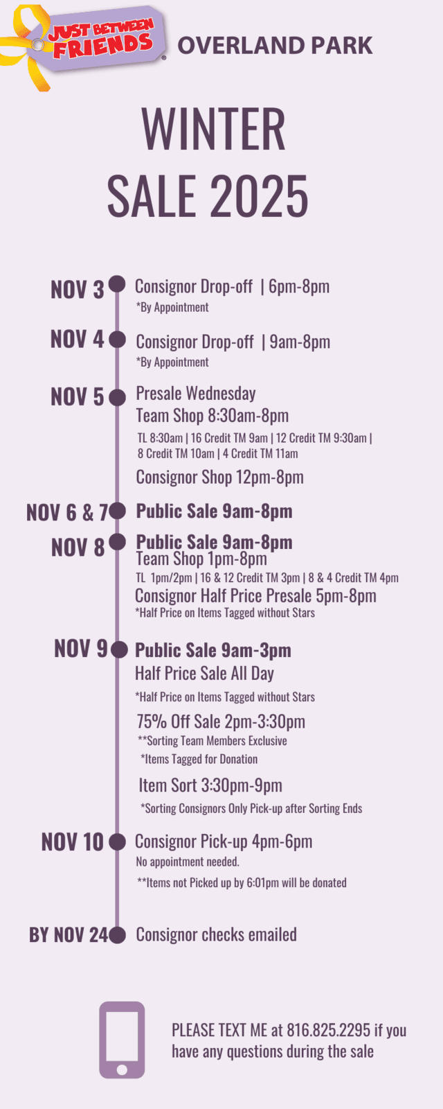Want to earn 75%-80% on your sold items, shop first and get some JBF Bucks to spend at the sale? Apply for our Team Lead program.